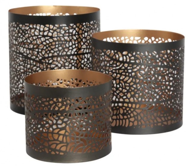 Halvor Bakke Comas lyslykt 3-pk Koksgrå med gull NOK524,30 Førpris:NOK749,00 Rabatt -30% inkl. mva. Kjøp Ønskeliste Del dette Produktinfo Sett med tre lyslykter i ulike størrelser. Matt koksgrå utside med gullfarget innside. Hullmønsteret danner vakre skygger når lysene tennes i disse dekorative telysholderne. Produktdetaljer: Ø12xH13 cm / Ø11xH11 cm / Ø9xH8 cm Lyktene er laget i 100 % metall Leveres i en flott gaveeske Enkelte tresorter kan reagere ved kontakt med metall, og få mørke merker. Undersøk hva underlaget ditt tåler før du plasserer produktet i direkte kontakt med underlag av tre. Settet er en del av Halvor Bakkes kolleksjon