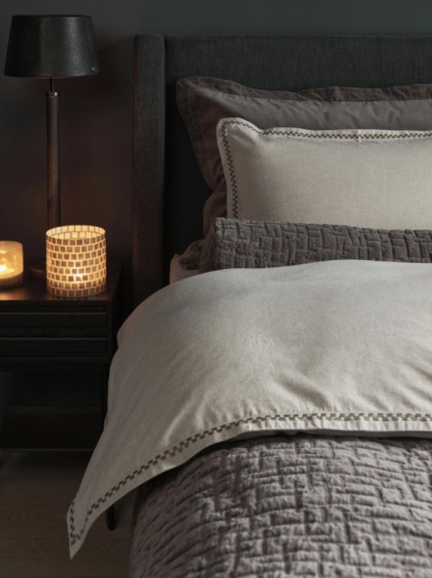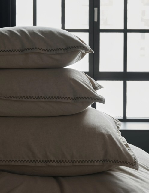 I all sin enkelhet er det et ton-i-ton broderi på putevar som fremhever den underliggende elegansen og det klassiske uttrykket. Samme design fås også som sengesett.