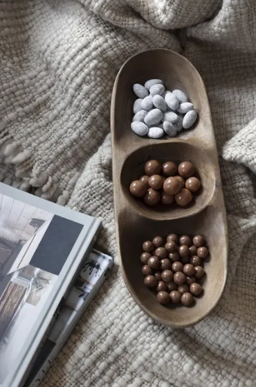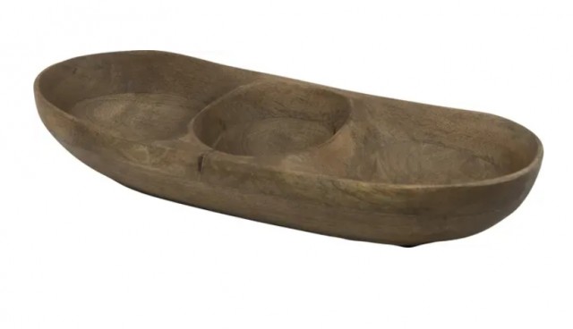 Fin 3-delt fat i mangotre som er perfekt for servering av snacks som frukt og bær eller nøtter. Den rustikke skålen av er perfekt å bryte av med det vanlige serviset eller plassere på salongbordet som dekorasjon og interiørdetaljer.