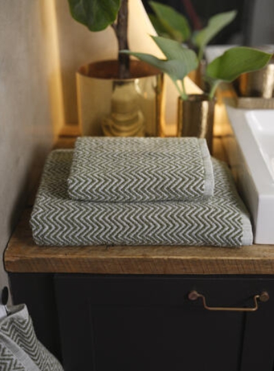 Verbier-håndklærne fra Halvor Bakke er i en garnfarget jacquardvev som er supermyk mot huden. De er vevd i nulltrådgarn, noe som gir optimal absorpsjon, og det subtile fiskebensmønsteret i ton-i-ton gir håndkleet liv og dybde. Fargene utfyller høstens varme palett perfekt og passer godt sammen med Clifton og La Grave.