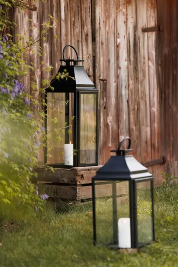 Lekker klassisk lanterne i sort stål, i to ulike høyder.